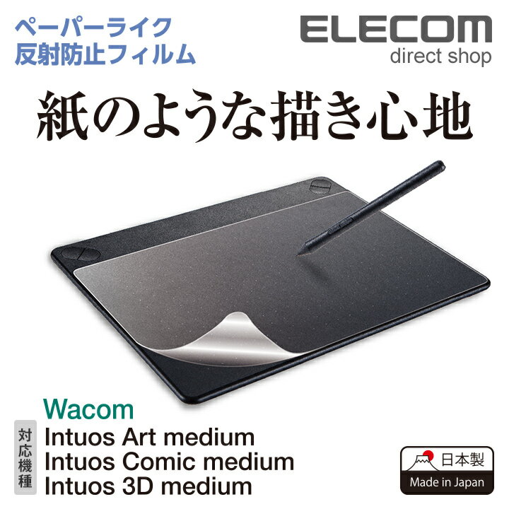■対応機種:Wacom Intuos Art medium (CTH-690/K0、CTH-690/B0)、Intuos Comic medium (CTH-690/K1、CTH-690/B1)、Intuos 3D medium (CTH-690/K2)■セット内容:操作面保護フィルム(エアーレス防指紋ペーパーライク反射防止仕様)×1、フィルム貼付用ヘラ×1、ホコリ取りシール×1、クリーニングクロス×1■材質:吸着面:シリコン膜、表面:PETエレコムダイレクトショップワコムペンタブレット Intuosシリーズ(medium)の操作面を傷や汚れから守る、指紋防止ペーパーライク反射防止タイプの保護フィルムです。