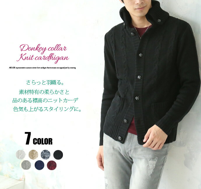カーディガン/メンズ ニット カーディガン/ ニット ジャケット/ メンズお待たせ致しました!大好評につき*再入荷完了!*お気に入りに! コメント ニット セーター カーディガン ニットジャケット ボリュームネックのドンキー衿、ケーブル編みで表現された存在感のあるニットカーディガン!! ボタンにはバスケットボール釦を使用でアクセント! とにかくオシャレな雰囲気漂ってます!! 柔らかなニット素材が全体の風合いを極限まで引き立たせてくれます。